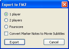 Помимо сохранения компактного fm3 вы ещё можете экспортировать данные мувика в формат fm2, принятый на сайте TASVideos задолго до возникновения Тасэдитора. В этом формате вы передаёте только Ввод. Для этого нужно выбрать в меню Тасэдитора пункт File -> Export to FM2. Появится окно, где можно выбрать формат целевого мувика (1P, 2P или Fourscore).
